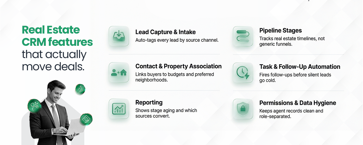 Not every CRM feature is worth your attention. But these are the ones that actually make a difference in day-to-day real estate work: