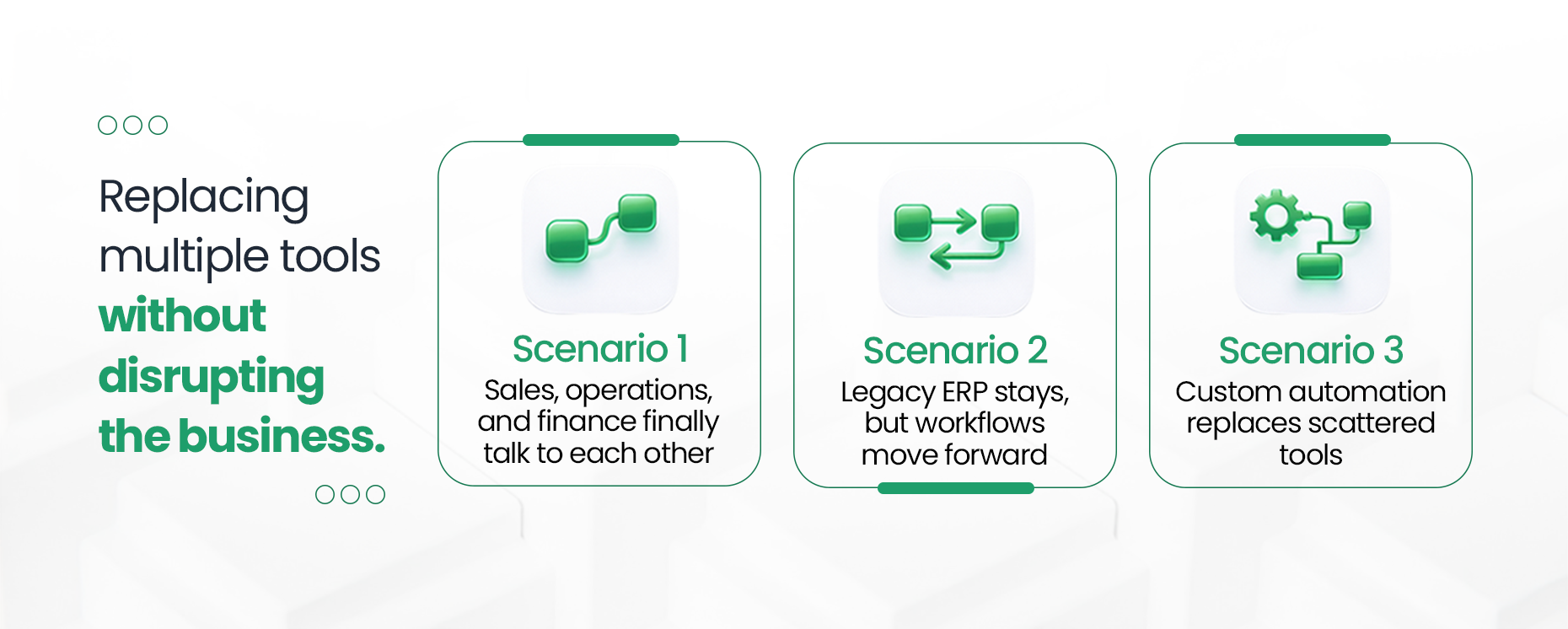 A unified business system takes a different route. Instead of forcing legacy tools to behave like modern apps, it:
